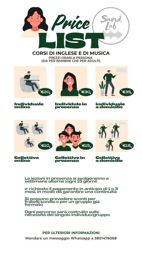 *le lezioni in presenza possono essere svolte in 2 al costo di 18 euro/h a persona.
